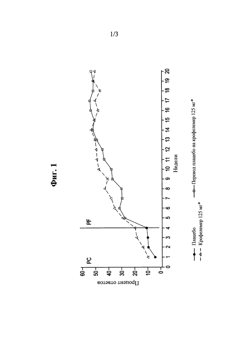 15. Способ по п. 1, в котором ответ на лечение увеличивается после того, как крофелемер вводили в течение более 4 месяцев.