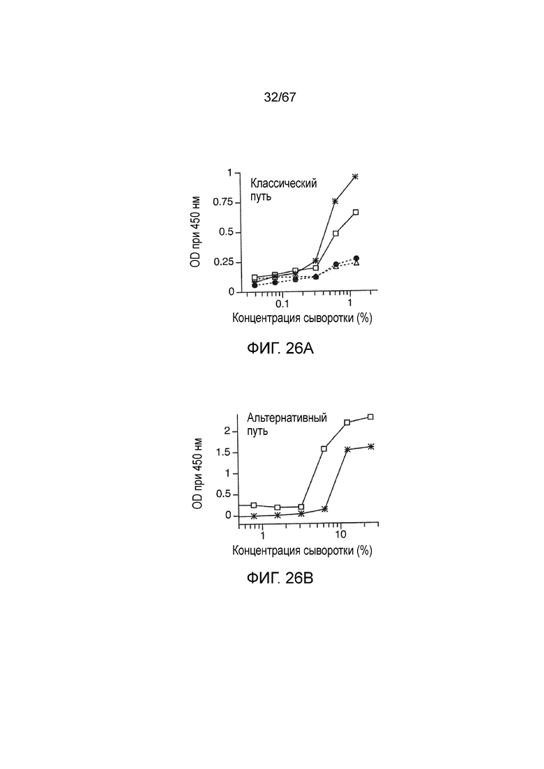 На фиг.26A графически иллюстрируются результаты анализа депонирования C3b, демонстрирующие, что у мышей MASP-2 (-/-) сохраняется функциональный классический путь, как описано в примере 22;