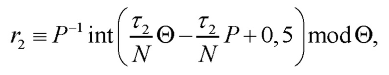 где int(X) - есть целая часть числа X, L = Y mod Z - есть сравнение числа L с числом Y по модулю Z, а Р-1 и Θ-1 - есть величины, обратные Р и Θ по модулю Θ и Р, вычисляемые с использованием математической теории чисел.