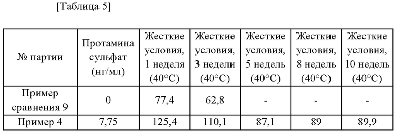[98] Таким образом, как показано в таблице 5, было подтверждено, что стабильность лиофилизированного состава ботулинического токсина сохранялась только для состава, содержащего протамина сульфат.
