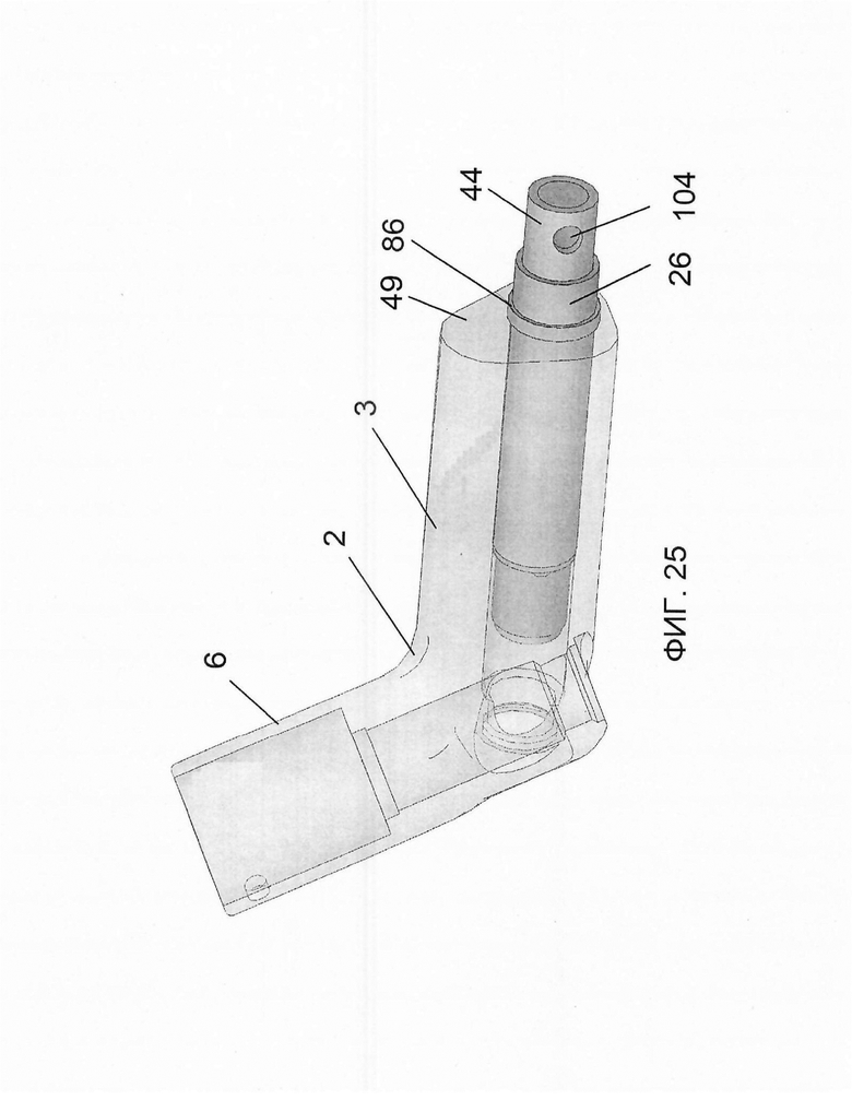 На фиг. 25 изображено крепление корпуса в виде трубки с торцом первой стержнеобразной части базового тела, аксонометрия;