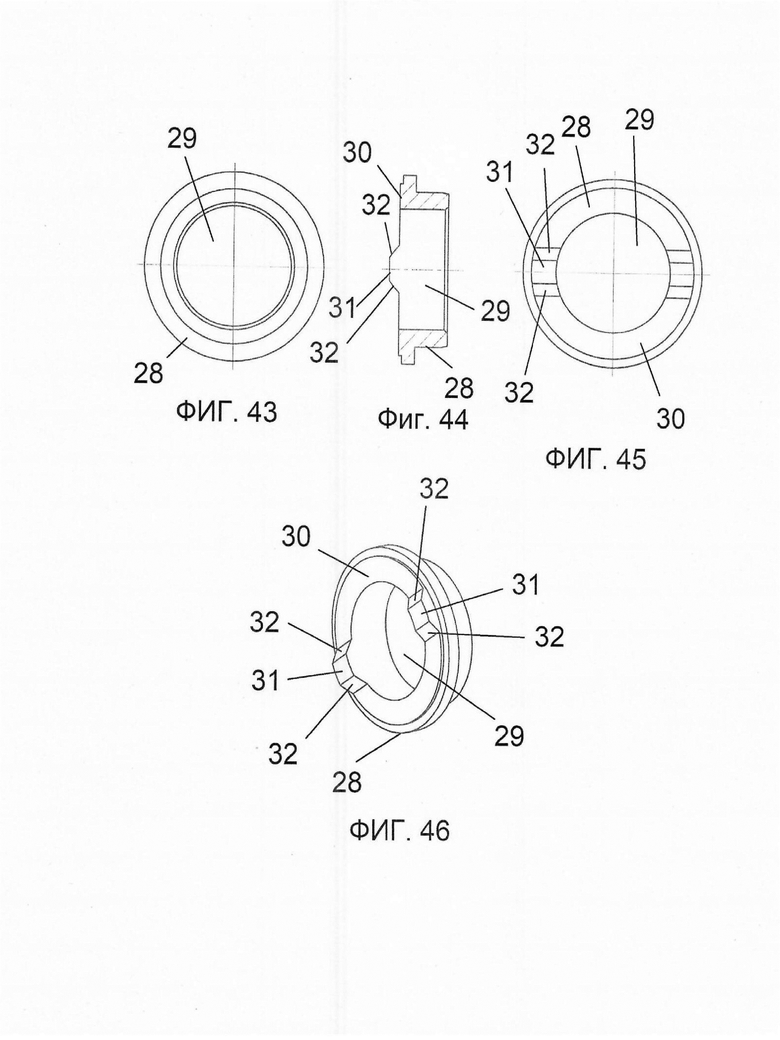• Причем на стенке 64 опорной втулки 62 со стороны, противоположной дополнительному цилиндрическому уширению 59 увеличенного диаметра винта 51 имеется, по меньшей мере, пара противоположно расположенных выступов 65 с наклонными стенками 66,