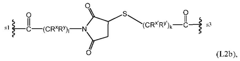 [0023] В некоторых вариантах осуществления все Rx, Ry, Rx' и Ry' иммуноконъюгата представляют собой Н; и l и k каждый независимо представляют собой целое число от 2 до 6. В некоторых вариантах осуществления А иммуноконъюгата представляет собой пептид, содержащий от 2 до 5 аминокислотных остатков.