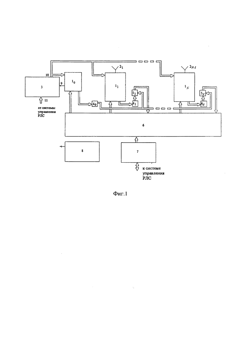 Усиленные в приемных каналах ППМ 1i. сигналы поступают на входы когерентных накапливающих сумматоров 4i на выходах которых в результате N-кратного последовательного когерентного суммирования входных сигналов формируются результирующие сигналы с отношением сигнал-шум в N раз превышающим соответствующее отношение на входе приемного канала каждого i-го ППМ 1 при боевой работе РЛС по целям, что позволяет скорректировать амплитудно-фазовые характеристики приемных каналов всех i-х ППМ 1 ЦАР и как следствие - обеспечить формирование равномерного исходного амплитудно-фазового распределения поля на апертуре приемной ЦАР, для чего и осуществляется ее калибровка.