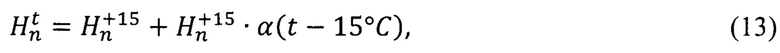 - высота уровня жидкости при температуре плюс 15°С, мм; α - коэффициент линейного расширения материала оболочки бака (равный 0,000025