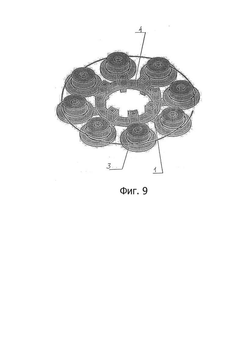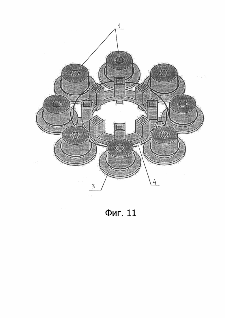 Выполнение трансформатора в варианте, где витки второй обмотки охватывают каждый элемент магнитопровода на каждом витке или через несколько витков (фиг. 9, 10, 11, 12) позволяет также, аналогично первой обмотке, изменить намагниченность магнитопровода и изменить коэффициент трансформации.