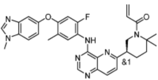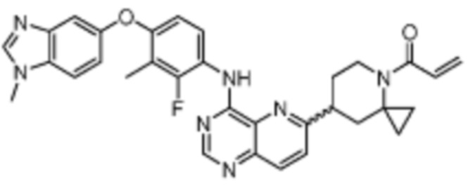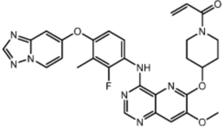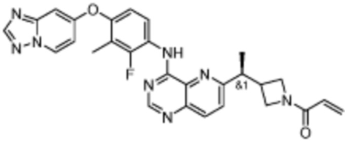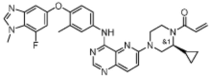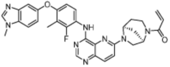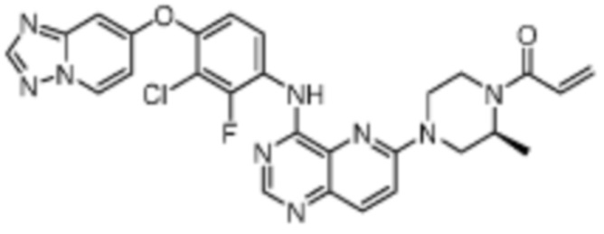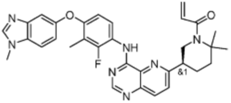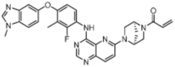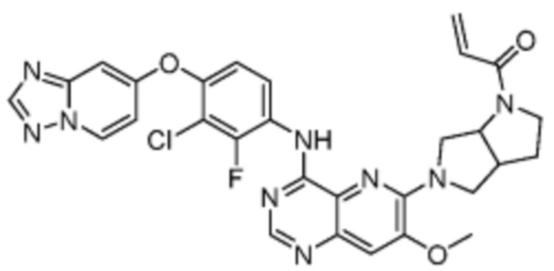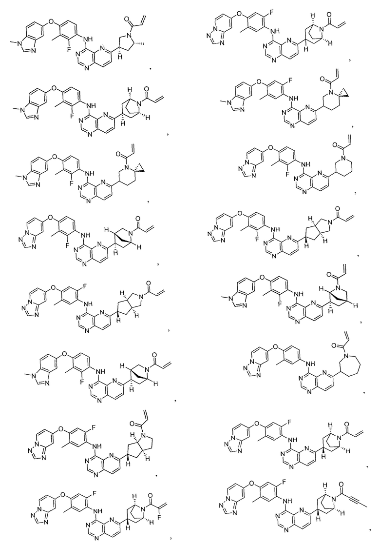 В другом предпочтительном варианте осуществления Формулы (I), R1 представляет собой -L1-R5. В одном варианте осуществления Формулы (I), R1 выбран из группы, состоящей из 1-акрилоилпиперидин-4-олата, 6-акрилоил-3,6-диазабицикло[3.1.1]гептан-3-ила, 1-акрилоилгексагидропирроло[3,4-b]пиррол-5(1H)-ила, 1-(бицикло[1.1.0]бутан-1-карбонил)гексагидропирроло[3,4-b]пиррол-5(1H)-ила, (1-акрилоилпиперидин-4-ил)тио, 2-акрилоил-2,6-диазабицикло[3.2.1]октан-6-ила, 4-акрилоилпиперазин-1-ила, 4-акрилоил-3,3-диметилпиперазин-1-ила, (1-акрилоилпиперидин-4-ил)(метил)амино, 1-акрилоилпиперидин-3-ила, 1-акрилоил-6,6-диметилпиперидин-3-ила, 1-акрилоилоктагидроциклопента[b]пиррол-5-ила, 1-акрилоилпиперидин-4-ила, 3-акрилоил-3,6-диазабицикло[3.1.1]гептан-6-ила, (1-акрилоилазетидин-3-ил)тио, 4-акрилоил-5,5-диметил-1,4-диазепан-1-ила, 4-акрилоил-3,3-диметил-1,4-диазепан-1-ила, 5-акрилоил-2,5-диазабицикло[2.2.1]гептан-2-ила, 4-акрилоил-3-(трифторметил)пиперазин-1-ила, 4-акрилоил-3-метилпиперазин-1-ила, 4-акрилоил-1,4-диазепан-1-ила, 6-акрилоил-2,6-диазаспиро[3.3]гептан-2-ила, 6-акрилоил-3,6-диазабицикло[3.2.1]октан-3-ила, 4-акрилоил-3,5-диметилпиперазин-1-ила, 6-акрилоил-3,6-диазабицикло[3.2.0]гептан-3-ила, 1-акрилоилпирролидин-3-ила, 1-акрилоилазепан-4-ила, 1-акрилоил-2-метилпиперидин-4-ила, 1-акрилоил-5-метилпирролидин-3-ила, 1-акрилоил-3-метилпиперидин-4-ила, 1-акрилоилазепан-3-ила, 1-акрилоил-2,2-диметилпиперидин-4-ила, 4-акрилоил-4-азаспиро[2.5]октан-7-ила, 8-акрилоил-8-азабицикло[3.2.1]октан-3-ила, 1-акрилоилоктагидроциклопента[b]пиррол-4-ила, 2-акрилоилоктагидроциклопента[c]пиррол-5-ила, 1-акрилоил-6,6-диметилазепан-4-ила, 9-акрилоил-3-окса-9-азабицикло[3.3.1]нонан-7-ила, 4-акрилоил-3-циклопропилпиперазин-1-ила, 4-акрилоил-3-этилпиперазин-1-ила, 1-акрилоил-2,6-диметилпиперидин-4-ила, 4-(бут-2-иноил)-3-(дифторметил)пиперазин-1-ила, 1-акрилоил-6-метилпиперидин-3-ила, 5-акрилоил-2,5-диазабицикло[2.2.2]октан-2-ила, 2-(бут-2-иноил)-2,6-диазабицикло[3.2.1]октан-6-ила, 4-(бут-2-иноил)-3-метилпиперазин-1-ила, 4-(бут-2-иноил)-3,3-диметилпиперазин-1-ила, 4-(бут-2-иноил)-3-(метоксиметил)пиперазин-1-ила, 4-(бут-2-иноил)-4,7-диазаспиро[2.5]октан-7-ила, 4-(бут-2-иноил)-3-(трифторметил)пиперазин-1-ила, 4-(2-фторакрилоил)пиперазин-1-ила, 4-(бицикло[1.1.0]бутан-1-карбонил)-3,3-диметилпиперазин-1-ила, 4-(2-фторакрилоил)-3,3-диметилпиперазин-1-ила, 1-(бут-2-иноил)-1,6-диазаспиро[3.3]гептан-6-ила, 4-акрилоил-4-азаспиро[2.5]октан-6-ила, 2-акрилоил-2-азабицикло[2.2.1]гептан-5-ила, 2-акрилоил-2-азабицикло[2.2.1]гептан-6-ила, 8-(2-фторакрилоил)-8-азабицикло[3.2.1]октан-3-ила, 8-(бут-2-иноил)-8-азабицикло[3.2.1]октан-3-ила, 1-(бут-2-иноил)азепан-4-ила, 7-акрилоил-7-азабицикло[2.2.1]гептан-2-ила, 2-акрилоил-2-азабицикло[2.2.2]октан-5-ила, 3-акрилоил-3-азабицикло[3.2.1]октан-8-ила, 8-акрилоил-3,8-диазабицикло[3.2.1]октан-3-ила, 8-(бут-2-иноил)-3,8-диазабицикло[3.2.1]октан-3-ила, 3-акрилоил-3,8-диазабицикло[3.2.1]октан-8-ила, 4-циано-3,3-диметилпиперазин-1-ила, 3-(бут-2-иноил)-3,8-диазабицикло[3.2.1]октан-8-ила, 4-акрилоил-3-изопропилпиперазин-1-ила, 1-акрилоил-1,6-диазаспиро[3.3]гептан-6-ила, 1-акрилоилазетидин-3-ила, 4-акрилоил-4,7-диазаспиро[2.5]октан-7-ила, 6-акрилоил-1,6-диазаспиро[3.3]гептан-1-ила, 4-акрилоил-3-(трет-бутил)пиперазин-1-ила, 1-акрилоил-5,5-диметилпирролидин-3-ила, 4-акрилоил-3-(дифторметил)пиперазин-1-ила, (1-акрилоилазетидин-3-ил)метила, 1-(1-акрилоилазетидин-3-ил)этила, 1-акрилоил-5-циклопропилпирролидин-3-ила, 4-акрилоил-3-циклобутилпиперазин-1-ила, 1-акрилоил-5-(метоксиметил)пирролидин-3-ила, 2-акрилоил-2,6-диазаспиро[3.4]октан-6-ила, 5-акрилоил-5,8-диазаспиро[3.5]нонан-8-ила, 5-(бут