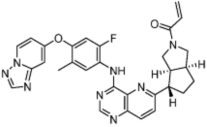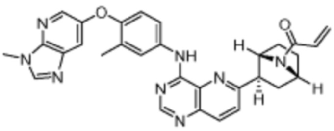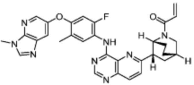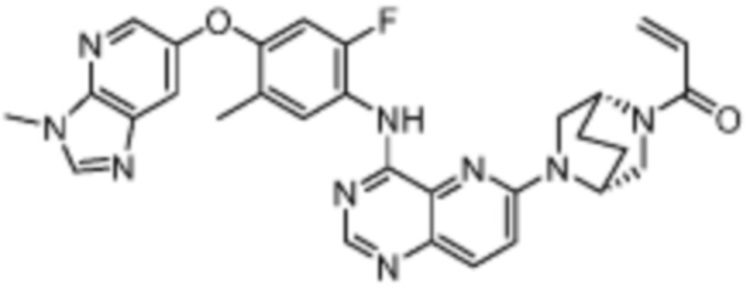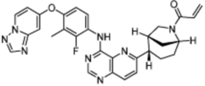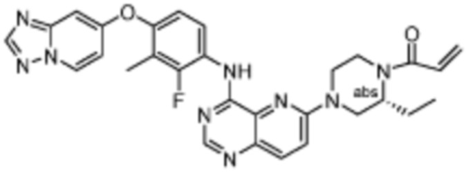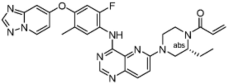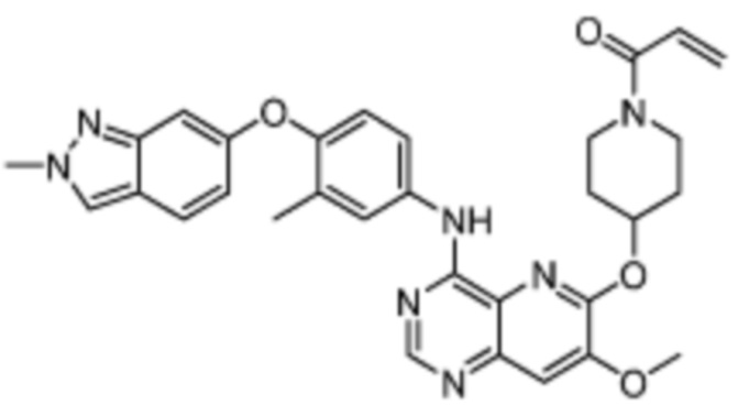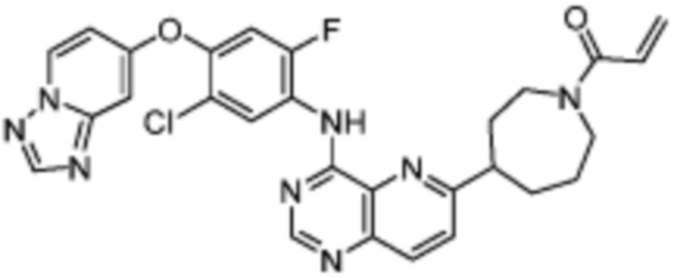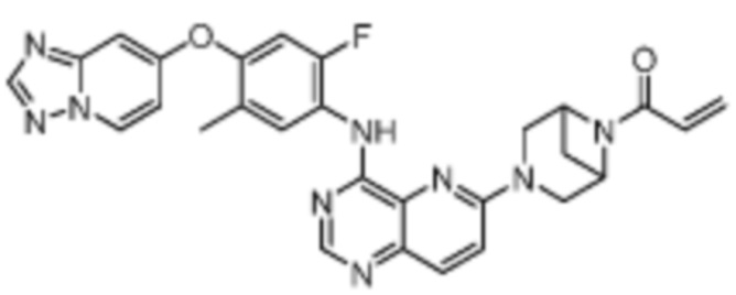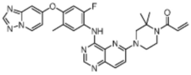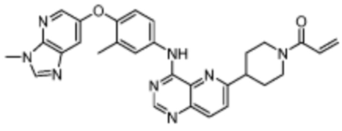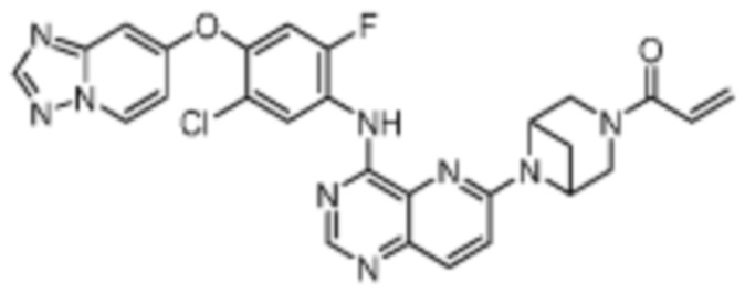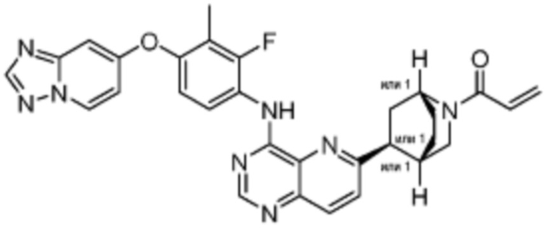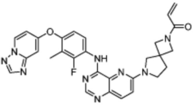 В другом предпочтительном варианте осуществления Формулы (I), R1 представляет собой -L1-R5. В одном варианте осуществления Формулы (I), R1 выбран из группы, состоящей из 1-акрилоилпиперидин-4-олата, 6-акрилоил-3,6-диазабицикло[3.1.1]гептан-3-ила, 1-акрилоилгексагидропирроло[3,4-b]пиррол-5(1H)-ила, 1-(бицикло[1.1.0]бутан-1-карбонил)гексагидропирроло[3,4-b]пиррол-5(1H)-ила, (1-акрилоилпиперидин-4-ил)тио, 2-акрилоил-2,6-диазабицикло[3.2.1]октан-6-ила, 4-акрилоилпиперазин-1-ила, 4-акрилоил-3,3-диметилпиперазин-1-ила, (1-акрилоилпиперидин-4-ил)(метил)амино, 1-акрилоилпиперидин-3-ила, 1-акрилоил-6,6-диметилпиперидин-3-ила, 1-акрилоилоктагидроциклопента[b]пиррол-5-ила, 1-акрилоилпиперидин-4-ила, 3-акрилоил-3,6-диазабицикло[3.1.1]гептан-6-ила, (1-акрилоилазетидин-3-ил)тио, 4-акрилоил-5,5-диметил-1,4-диазепан-1-ила, 4-акрилоил-3,3-диметил-1,4-диазепан-1-ила, 5-акрилоил-2,5-диазабицикло[2.2.1]гептан-2-ила, 4-акрилоил-3-(трифторметил)пиперазин-1-ила, 4-акрилоил-3-метилпиперазин-1-ила, 4-акрилоил-1,4-диазепан-1-ила, 6-акрилоил-2,6-диазаспиро[3.3]гептан-2-ила, 6-акрилоил-3,6-диазабицикло[3.2.1]октан-3-ила, 4-акрилоил-3,5-диметилпиперазин-1-ила, 6-акрилоил-3,6-диазабицикло[3.2.0]гептан-3-ила, 1-акрилоилпирролидин-3-ила, 1-акрилоилазепан-4-ила, 1-акрилоил-2-метилпиперидин-4-ила, 1-акрилоил-5-метилпирролидин-3-ила, 1-акрилоил-3-метилпиперидин-4-ила, 1-акрилоилазепан-3-ила, 1-акрилоил-2,2-диметилпиперидин-4-ила, 4-акрилоил-4-азаспиро[2.5]октан-7-ила, 8-акрилоил-8-азабицикло[3.2.1]октан-3-ила, 1-акрилоилоктагидроциклопента[b]пиррол-4-ила, 2-акрилоилоктагидроциклопента[c]пиррол-5-ила, 1-акрилоил-6,6-диметилазепан-4-ила, 9-акрилоил-3-окса-9-азабицикло[3.3.1]нонан-7-ила, 4-акрилоил-3-циклопропилпиперазин-1-ила, 4-акрилоил-3-этилпиперазин-1-ила, 1-акрилоил-2,6-диметилпиперидин-4-ила, 4-(бут-2-иноил)-3-(дифторметил)пиперазин-1-ила, 1-акрилоил-6-метилпиперидин-3-ила, 5-акрилоил-2,5-диазабицикло[2.2.2]октан-2-ила, 2-(бут-2-иноил)-2,6-диазабицикло[3.2.1]октан-6-ила, 4-(бут-2-иноил)-3-метилпиперазин-1-ила, 4-(бут-2-иноил)-3,3-диметилпиперазин-1-ила, 4-(бут-2-иноил)-3-(метоксиметил)пиперазин-1-ила, 4-(бут-2-иноил)-4,7-диазаспиро[2.5]октан-7-ила, 4-(бут-2-иноил)-3-(трифторметил)пиперазин-1-ила, 4-(2-фторакрилоил)пиперазин-1-ила, 4-(бицикло[1.1.0]бутан-1-карбонил)-3,3-диметилпиперазин-1-ила, 4-(2-фторакрилоил)-3,3-диметилпиперазин-1-ила, 1-(бут-2-иноил)-1,6-диазаспиро[3.3]гептан-6-ила, 4-акрилоил-4-азаспиро[2.5]октан-6-ила, 2-акрилоил-2-азабицикло[2.2.1]гептан-5-ила, 2-акрилоил-2-азабицикло[2.2.1]гептан-6-ила, 8-(2-фторакрилоил)-8-азабицикло[3.2.1]октан-3-ила, 8-(бут-2-иноил)-8-азабицикло[3.2.1]октан-3-ила, 1-(бут-2-иноил)азепан-4-ила, 7-акрилоил-7-азабицикло[2.2.1]гептан-2-ила, 2-акрилоил-2-азабицикло[2.2.2]октан-5-ила, 3-акрилоил-3-азабицикло[3.2.1]октан-8-ила, 8-акрилоил-3,8-диазабицикло[3.2.1]октан-3-ила, 8-(бут-2-иноил)-3,8-диазабицикло[3.2.1]октан-3-ила, 3-акрилоил-3,8-диазабицикло[3.2.1]октан-8-ила, 4-циано-3,3-диметилпиперазин-1-ила, 3-(бут-2-иноил)-3,8-диазабицикло[3.2.1]октан-8-ила, 4-акрилоил-3-изопропилпиперазин-1-ила, 1-акрилоил-1,6-диазаспиро[3.3]гептан-6-ила, 1-акрилоилазетидин-3-ила, 4-акрилоил-4,7-диазаспиро[2.5]октан-7-ила, 6-акрилоил-1,6-диазаспиро[3.3]гептан-1-ила, 4-акрилоил-3-(трет-бутил)пиперазин-1-ила, 1-акрилоил-5,5-диметилпирролидин-3-ила, 4-акрилоил-3-(дифторметил)пиперазин-1-ила, (1-акрилоилазетидин-3-ил)метила, 1-(1-акрилоилазетидин-3-ил)этила, 1-акрилоил-5-циклопропилпирролидин-3-ила, 4-акрилоил-3-циклобутилпиперазин-1-ила, 1-акрилоил-5-(метоксиметил)пирролидин-3-ила, 2-акрилоил-2,6-диазаспиро[3.4]октан-6-ила, 5-акрилоил-5,8-диазаспиро[3.5]нонан-8-ила, 5-(бут