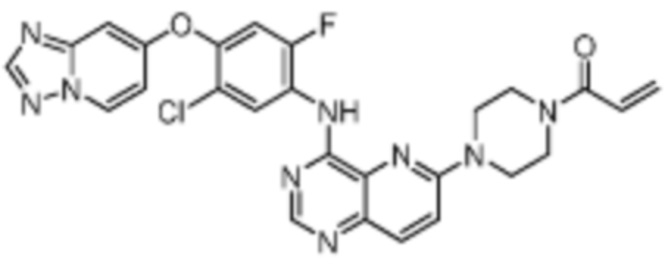 5. Применение соединения по любому из пп. 1-3 или его фармацевтически приемлемой соли при производстве лекарственного средства для лечения положительного по мутации HER2 рака.
