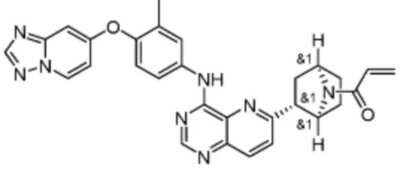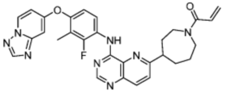 В предпочтительном варианте осуществления Формулы (I), R1 выбран из группы, состоящей из -L1-R5 и -NR6R7. В одном варианте осуществления Формулы (I), R1 выбран из группы, состоящей из 1-акрилоилпиперидин-4-олата, 6-акрилоил-3,6-диазабицикло[3.1.1]гептан-3-ила, 1-акрилоилгексагидропирроло[3,4-b]пиррол-5(1H)-ила, 1-(бицикло[1.1.0]бутан-1-карбонил)гексагидропирроло[3,4-b]пиррол-5(1H)-ила, (1-акрилоилпиперидин-4-ил)тио, 2-акрилоил-2,6-диазабицикло[3.2.1]октан-6-ила, 4-акрилоилпиперазин-1-ила, 4-акрилоил-3,3-диметилпиперазин-1-ила, (1-акрилоилпиперидин-4-ил)(метил)амино, 1-акрилоилпиперидин-3-ила, 1-акрилоил-6,6-диметилпиперидин-3-ила, 1-акрилоилоктагидроциклопента[b]пиррол-5-ила, 1-акрилоилпиперидин-4-ила, 3-акрилоил-3,6-диазабицикло[3.1.1]гептан-6-ила, (1-акрилоилазетидин-3-ил)тио, 4-акрилоил-5,5-диметил-1,4-диазепан-1-ила, 4-акрилоил-3,3-диметил-1,4-диазепан-1-ила, 5-акрилоил-2,5-диазабицикло[2.2.1]гептан-2-ила, 4-акрилоил-3-(трифторметил)пиперазин-1-ила, 4-акрилоил-3-метилпиперазин-1-ила, 4-акрилоил-1,4-диазепан-1-ила, 6-акрилоил-2,6-диазаспиро[3.3]гептан-2-ила, 6-акрилоил-3,6-диазабицикло[3.2.1]октан-3-ила, 4-акрилоил-3,5-диметилпиперазин-1-ила, 6-акрилоил-3,6-диазабицикло[3.2.0]гептан-3-ила, 1-акрилоилпирролидин-3-ила, 1-акрилоилазепан-4-ила, 1-акрилоил-2-метилпиперидин-4-ила, 1-акрилоил-5-метилпирролидин-3-ила, 1-акрилоил-3-метилпиперидин-4-ила, 1-акрилоилазепан-3-ила, 1-акрилоил-2,2-диметилпиперидин-4-ила, 4-акрилоил-4-азаспиро[2.5]октан-7-ила, 8-акрилоил-8-азабицикло[3.2.1]октан-3-ила, 1-акрилоилоктагидроциклопента[b]пиррол-4-ила, 2-акрилоилоктагидроциклопента[c]пиррол-5-ила, 1-акрилоил-6,6-диметилазепан-4-ила, N-акриламида, N-бут-2-инамида, N-этенсульфонамида, N-метил-N-этенсульфонамида, N-метил-N-акриламида, 9-акрилоил-3-окса-9-азабицикло[3.3.1]нонан-7-ила, 4-акрилоил-3-циклопропилпиперазин-1-ила, 4-акрилоил-3-этилпиперазин-1-ила, 1-акрилоил-2,6-диметилпиперидин-4-ила, 4-(бут-2-иноил)-3-(дифторметил)пиперазин-1-ила, 1-акрилоил-6-метилпиперидин-3-ила, 5-акрилоил-2,5-диазабицикло[2.2.2]октан-2-ила, 2-(бут-2-иноил)-2,6-диазабицикло[3.2.1]октан-6-ила, 4-(бут-2-иноил)-3-метилпиперазин-1-ила, 4-(бут-2-иноил)-3,3-диметилпиперазин-1-ила, 4-(бут-2-иноил)-3-(метоксиметил)пиперазин-1-ила, 4-(бут-2-иноил)-4,7-диазаспиро[2.5]октан-7-ила, 4-(бут-2-иноил)-3-(трифторметил)пиперазин-1-ила, 4-(2-фторакрилоил)пиперазин-1-ила, 4-(бицикло[1.1.0]бутан-1-карбонил)-3,3-диметилпиперазин-1-ила, 4-(2-фторакрилоил)-3,3-диметилпиперазин-1-ила, 1-(бут-2-иноил)-1,6-диазаспиро[3.3]гептан-6-ила, 4-акрилоил-4-азаспиро[2.5]октан-6-ила, 2-акрилоил-2-азабицикло[2.2.1]гептан-5-ила, 2-акрилоил-2-азабицикло[2.2.1]гептан-6-ила, 8-(2-фторакрилоил)-8-азабицикло[3.2.1]октан-3-ила, 8-(бут-2-иноил)-8-азабицикло[3.2.1]октан-3-ила, 1-(бут-2-иноил)азепан-4-ила, 7-акрилоил-7-азабицикло[2.2.1]гептан-2-ила, 2-акрилоил-2-азабицикло[2.2.2]октан-5-ила, 3-акрилоил-3-азабицикло[3.2.1]октан-8-ила, 8-акрилоил-3,8-диазабицикло[3.2.1]октан-3-ила, 8-(бут-2-иноил)-3,8-диазабицикло[3.2.1]октан-3-ила, 3-акрилоил-3,8-диазабицикло[3.2.1]октан-8-ила, 4-циано-3,3-диметилпиперазин-1-ила, 3-(бут-2-иноил)-3,8-диазабицикло[3.2.1]октан-8-ила, 4-акрилоил-3-изопропилпиперазин-1-ила, 1-акрилоил-1,6-диазаспиро[3.3]гептан-6-ила, 1-акрилоилазетидин-3-ила, 4-акрилоил-4,7-диазаспиро[2.5]октан-7-ила, 6-акрилоил-1,6-диазаспиро[3.3]гептан-1-ила, 4-акрилоил-3-(трет-бутил)пиперазин-1-ила, 1-акрилоил-5,5-диметилпирролидин-3-ила, 4-акрилоил-3-(дифторметил)пиперазин-1-ила, (1-акрилоилазетидин-3-ил)метила, 1-(1-акрилоилазетидин-3-ил)этила, 1-акрилоил-5-циклопропилпирролидин-3-ила, 4-акрилоил-3-циклобутилпиперазин-1-ила, 1-акрилоил-5-(метокс