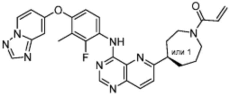 В одном варианте осуществления Формулы (I), R1 выбран из группы, состоящей из -L1-R5, -NR6R7, N-метил-3-акриламида и проп-1-ен-2-ила, где R1 не является 1-акрилоилпиперидин-4-олатом или 4-акрилоилпиперазин-1-илом. В одном варианте осуществления Формулы (I), R1 выбран из группы, состоящей из 6-акрилоил-3,6-диазабицикло[3.1.1]гептан-3-ила, 1-акрилоилгексагидропирроло[3,4-b]пиррол-5(1H)-ила, 1-(бицикло[1.1.0]бутан-1-карбонил)гексагидропирроло[3,4-b]пиррол-5(1H)-ила, (1-акрилоилпиперидин-4-ил)тио, 2-акрилоил-2,6-диазабицикло[3.2.1]октан-6-ила, 4-акрилоил-3,3-диметилпиперазин-1-ила, (1-акрилоилпиперидин-4-ил)(метил)амино, 1-акрилоилпиперидин-3-ила, 1-акрилоил-6,6-диметилпиперидин-3-ила, 1-акрилоилоктагидроциклопента[b]пиррол-5-ила, 1-акрилоилпиперидин-4-ила, 3-акрилоил-3,6-диазабицикло[3.1.1]гептан-6-ила, (1-акрилоилазетидин-3-ил)тио, 4-акрилоил-5,5-диметил-1,4-диазепан-1-ила, 4-акрилоил-3,3-диметил-1,4-диазепан-1-ила, 5-акрилоил-2,5-диазабицикло[2.2.1]гептан-2-ила, 4-акрилоил-3-(трифторметил)пиперазин-1-ила, 4-акрилоил-3-метилпиперазин-1-ила, 4-акрилоил-1,4-диазепан-1-ила, 6-акрилоил-2,6-диазаспиро[3.3]гептан-2-ила, 6-акрилоил-3,6-диазабицикло[3.2.1]октан-3-ила, 4-акрилоил-3,5-диметилпиперазин-1-ила, 6-акрилоил-3,6-диазабицикло[3.2.0]гептан-3-ила, 1-акрилоилпирролидин-3-ила, 1-акрилоилазепан-4-ила, 1-акрилоил-2-метилпиперидин-4-ила, 1-акрилоил-5-метилпирролидин-3-ила, 1-акрилоил-3-метилпиперидин-4-ила, 1-акрилоилазепан-3-ила, 1-акрилоил-2,2-диметилпиперидин-4-ила, 4-акрилоил-4-азаспиро[2.5]октан-7-ила, 8-акрилоил-8-азабицикло[3.2.1]октан-3-ила, 1-акрилоилоктагидроциклопента[b]пиррол-4-ила, 2-акрилоилоктагидроциклопента[c]пиррол-5-ила, 1-акрилоил-6,6-диметилазепан-4-ила, N-акриламида, N-бут-2-инамида, N-этенсульфонамида, N-метил-N-этенсульфонамида, N-метил-3-акриламида, N-метил-N-акриламида и проп-2-ен-1-она.