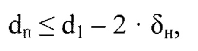 Zн – осевой размер фаски на торце резьбового хвостовика или шпильки, мм; также между стыком и участком наружной резьбы с полным профилем на «хвостовике» или симметрично торцовой опорной плоскости соединения между стыком и участками наружной резьбы с полным профилем на шпильке выполняют проточку, диаметр которой определяют согласно неравенства:
